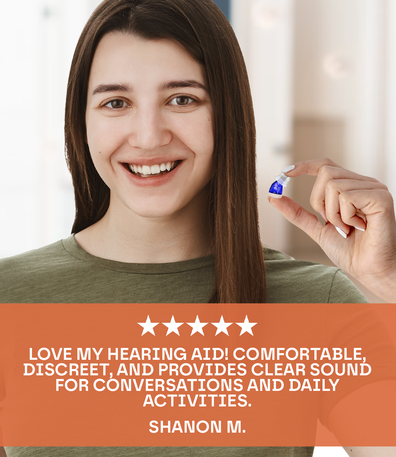 Enjoy crystal-clear sound and effortless conversations with our discreet, rechargeable hearing aids. Comfortable, nearly invisible, and offering up to 3 days of continuous clarity so you can experience every moment, fully.